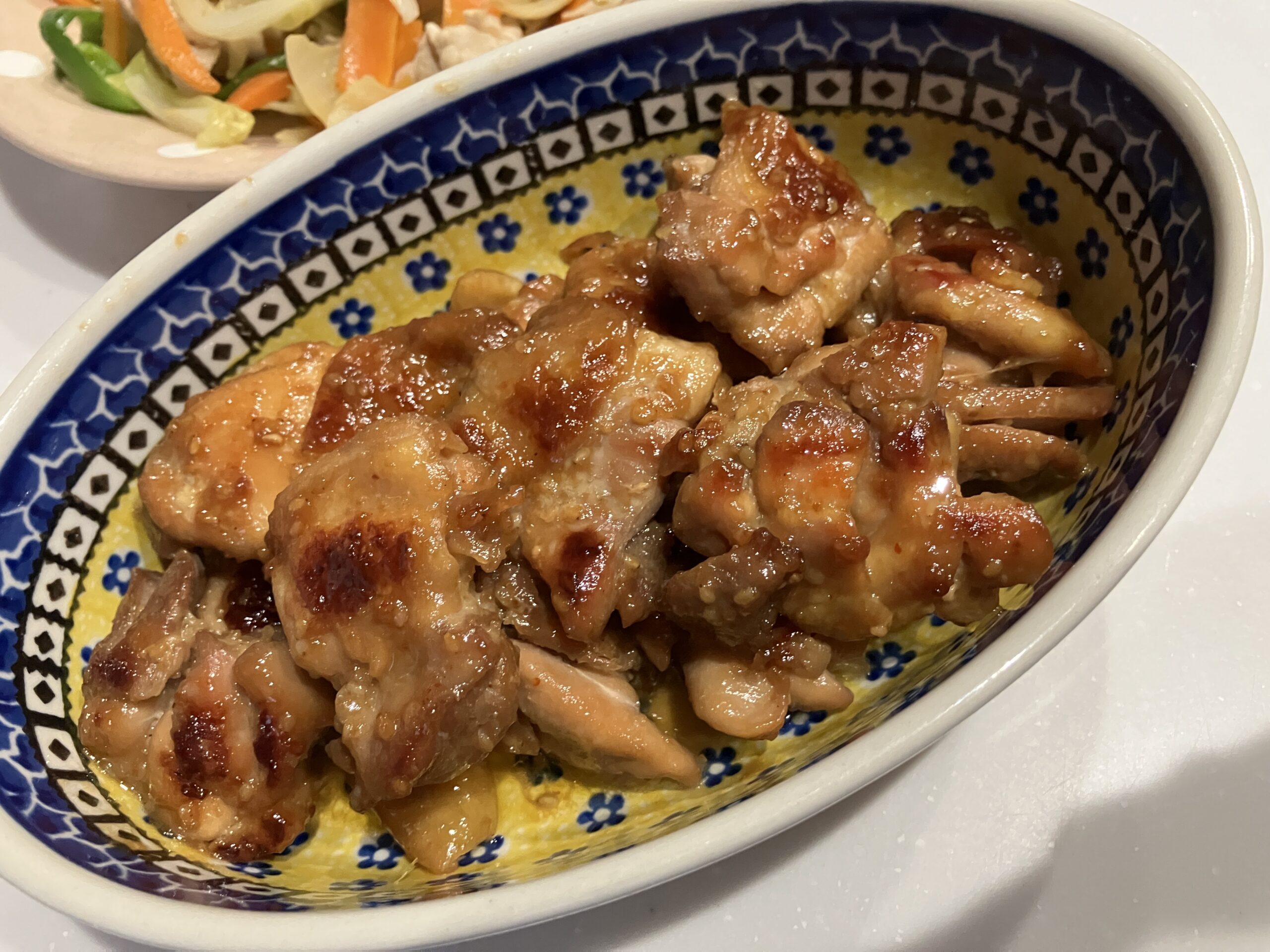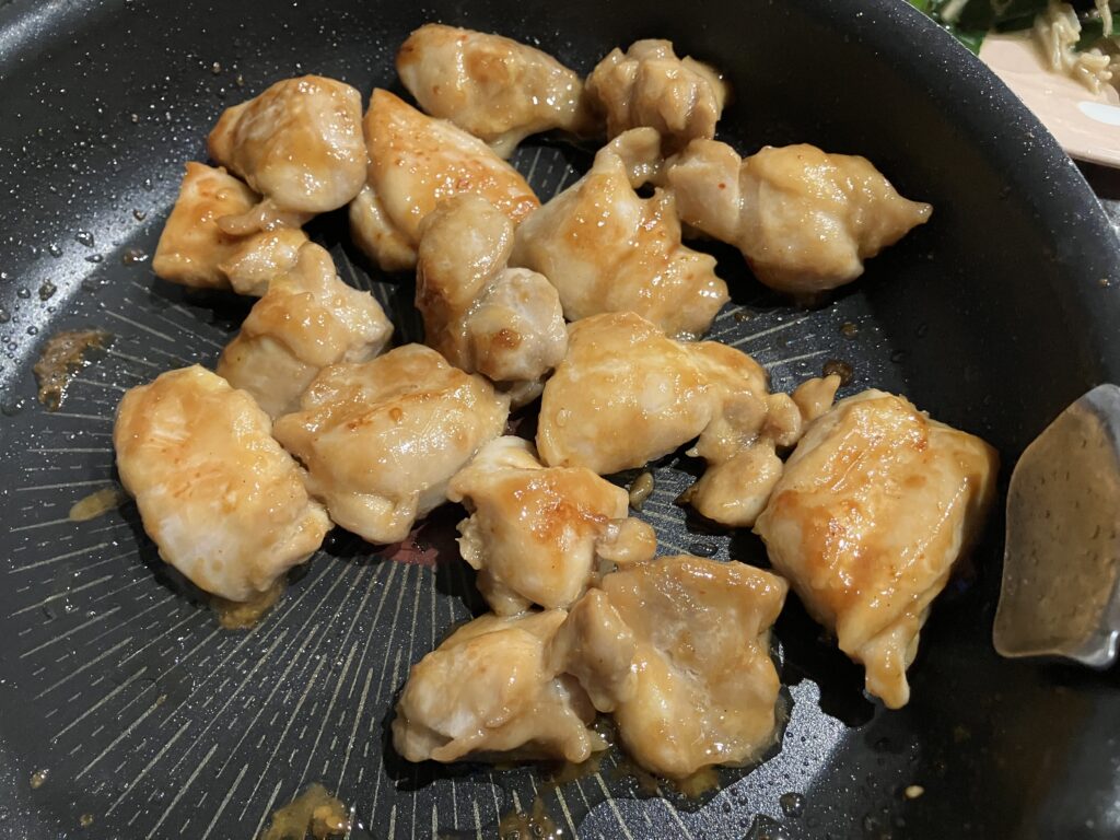 簡単!一口サイズの照り焼きチキン おかず Twitter Facebook はてブ Pocket LINE コピー 2026.01.29 材料鶏もも肉・・・1枚(一口サイズに切る)焼肉のタレ・・・40gくらい(全体が浸かるくらい 適当で大丈夫です) ①肉を焼肉のタレに10分程度漬ける。 ②フライパンにサラダ油を引き、温まったらこんがり焼き色がつくまで肉を焼く。 ③できあがり。 旦那の一言 めちゃくちゃうまい。つまみお弁当に最高。子どもも大好き。材料これだけ???って思うくらい美味しいし満足感高い。