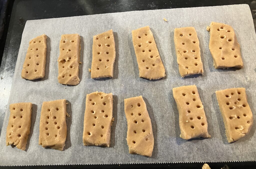 ②14×12cmになるように成形して12個のショートブレッド型になるように切る。