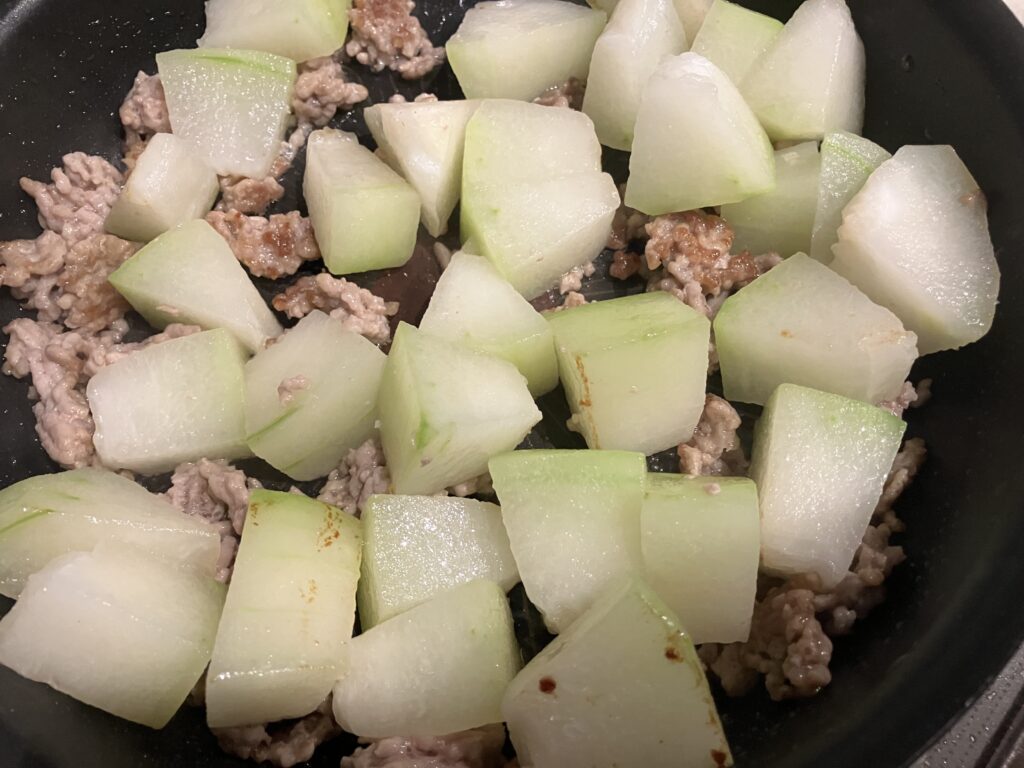 焼き色がついたら①の冬瓜を入れ、さっと炒める。