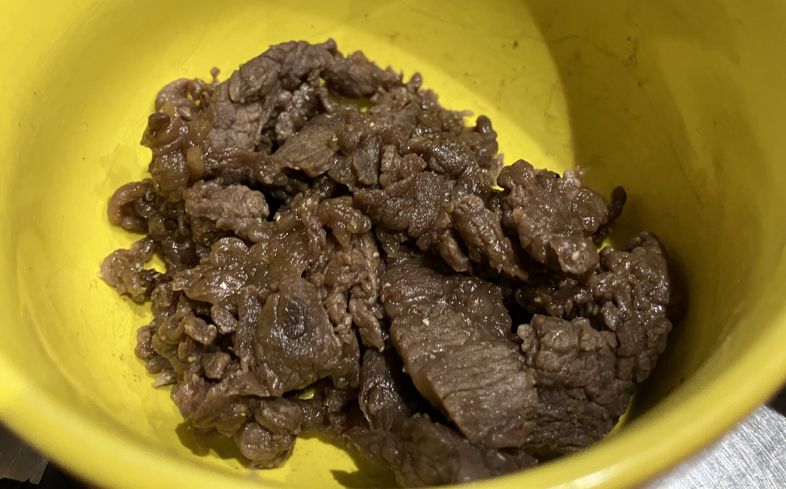 牛肉の切り落とし・・・200gくらい(ロース肉がおすすめ)